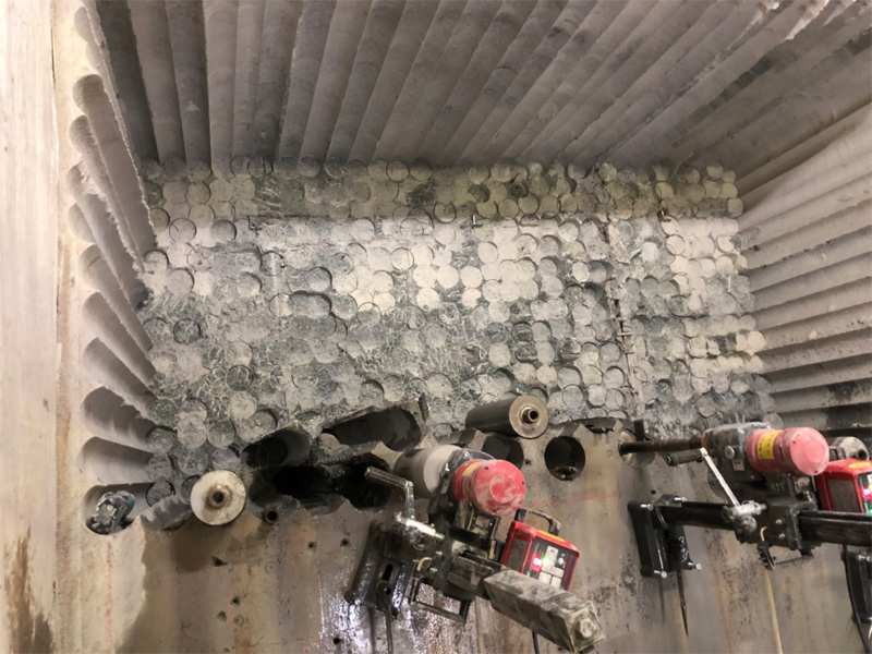 コアボーリング工事とはダイヤモンドコアビットを高速回転させて、構造物に穴を開ける工事です。
