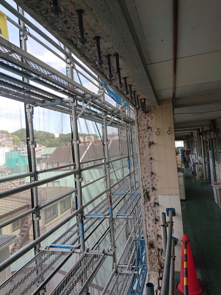 私達の施工はこれで完了になるのですが、その後鉄骨ブレースが付き隙間をグラウト(コンクリートの