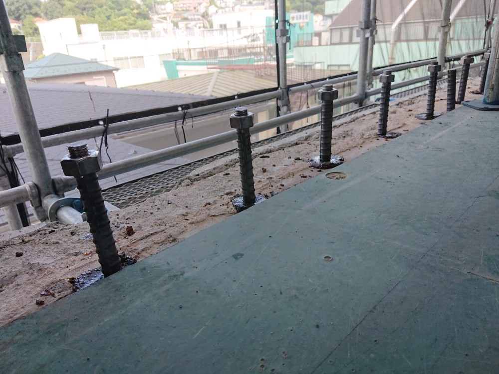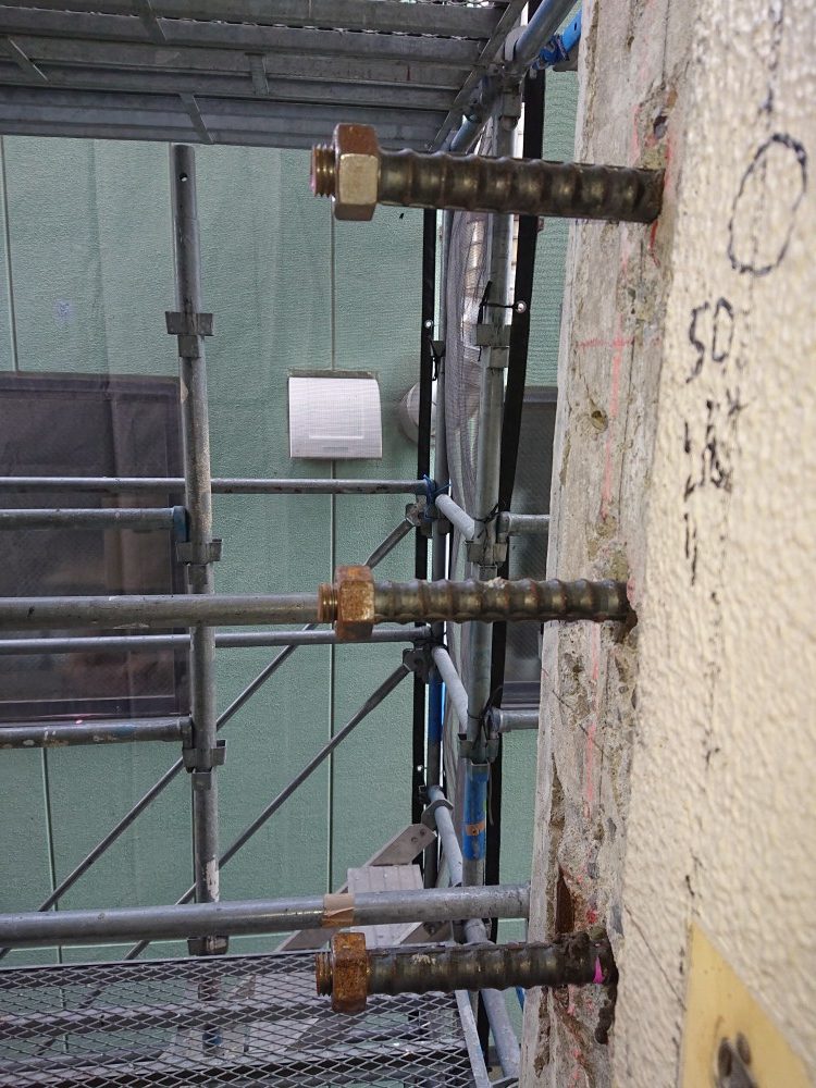 ハンマードリルで規定の深さを掘り、樹脂カプセルを挿入して異形鉄筋(D19)を打つのですが、ナッ