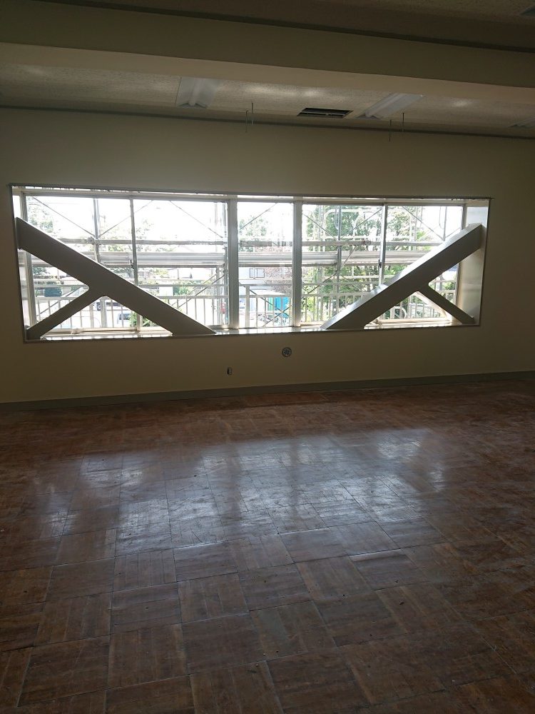 これは、耐震補強工事の一つで鉄骨ブレース補強と言います。