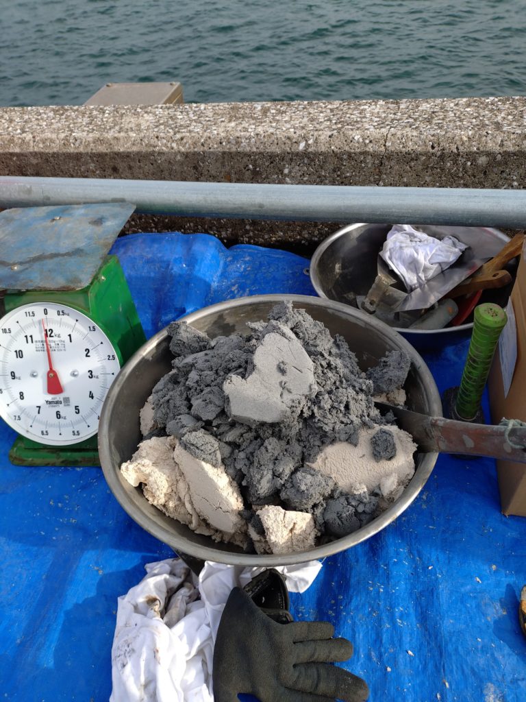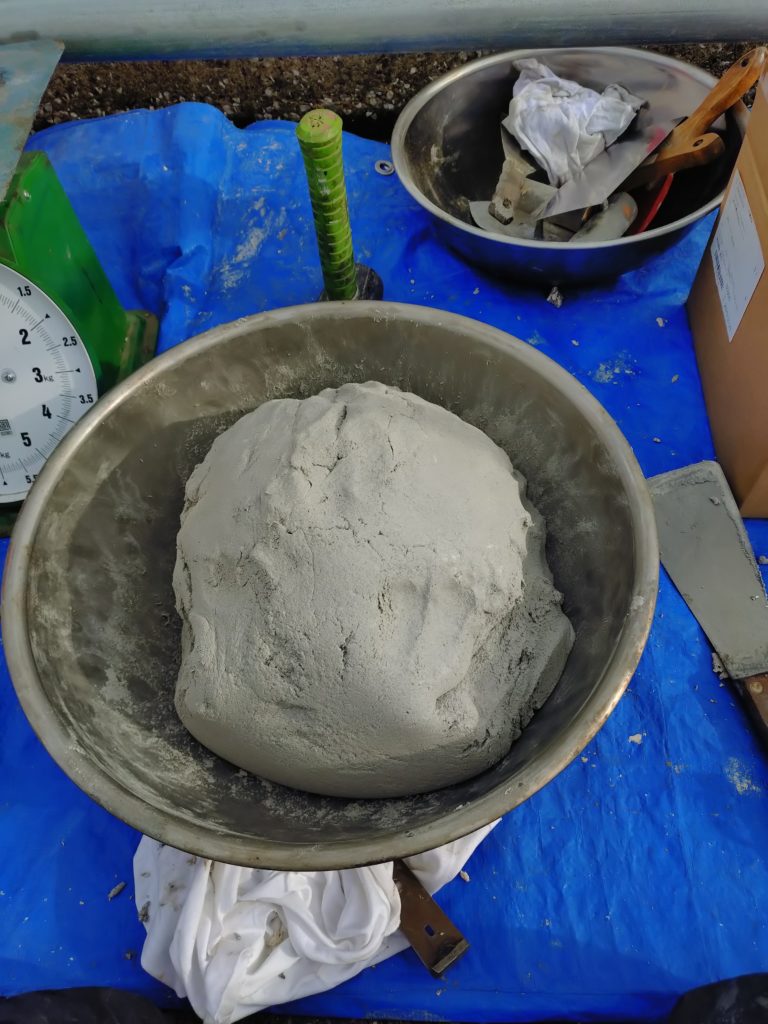 その後、Kモルタル(コニシ製 エポキシ樹脂系)を練り混ぜます。