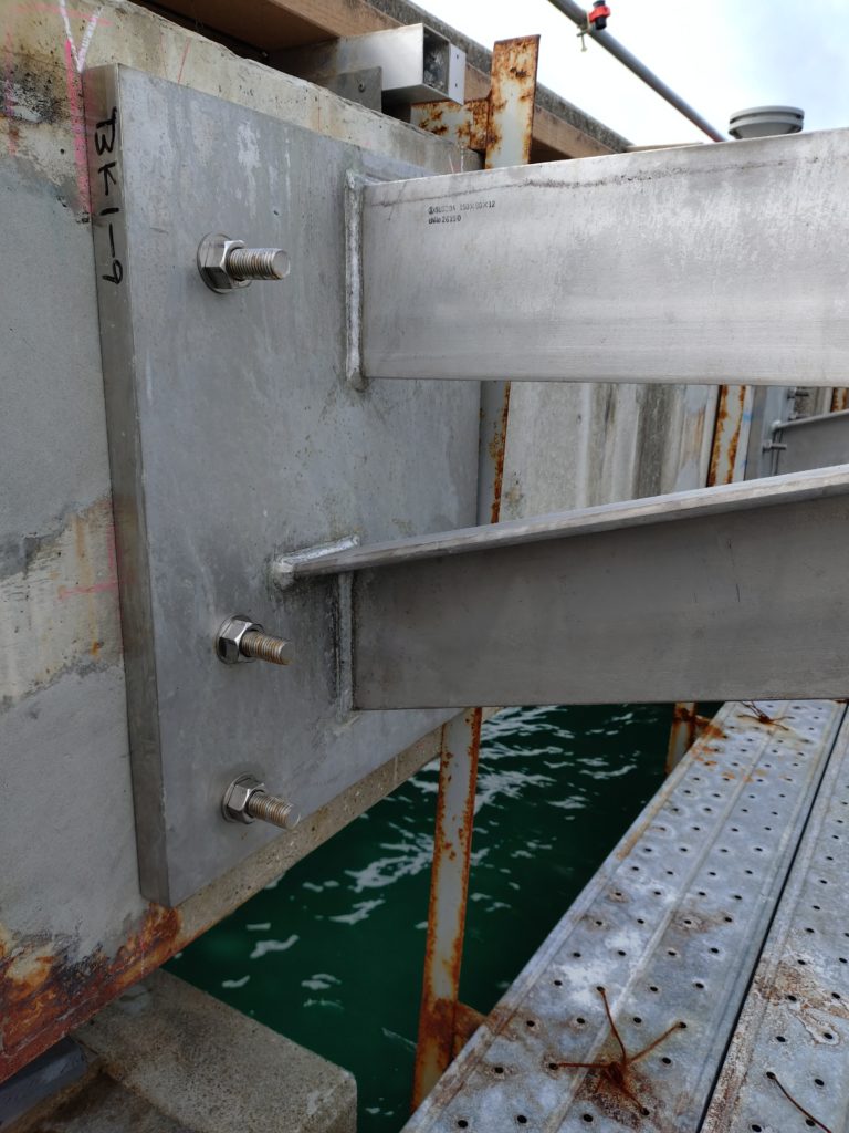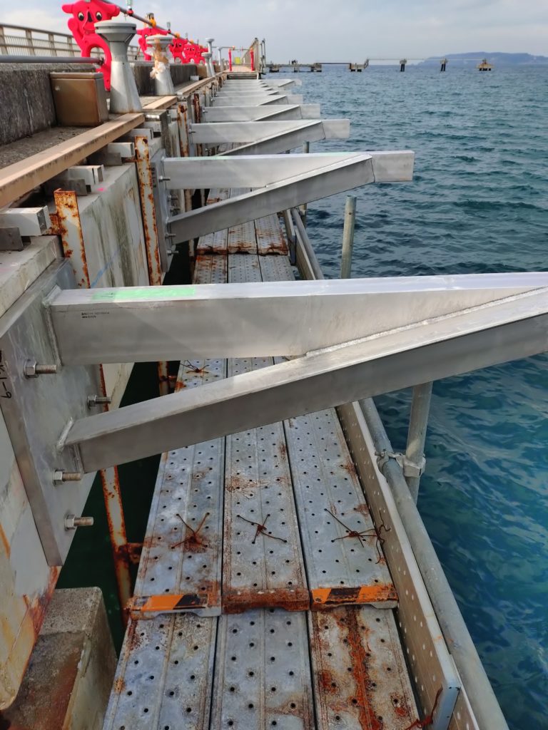 お疲れ様です。今回、桟橋歩道改修工事でアンカー、引張試験、断面修復まで請負いました。