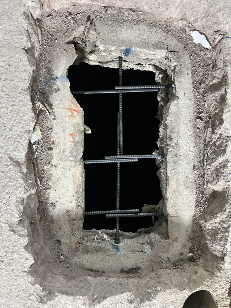 を合わせて穴あけをします。鉄筋干渉することもありますが難なくこなします。まだD10という小さいサ