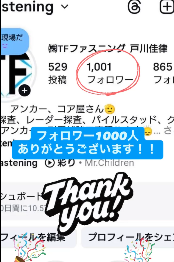 おかげさまでInstagramのフォロワーが1.000になりました。