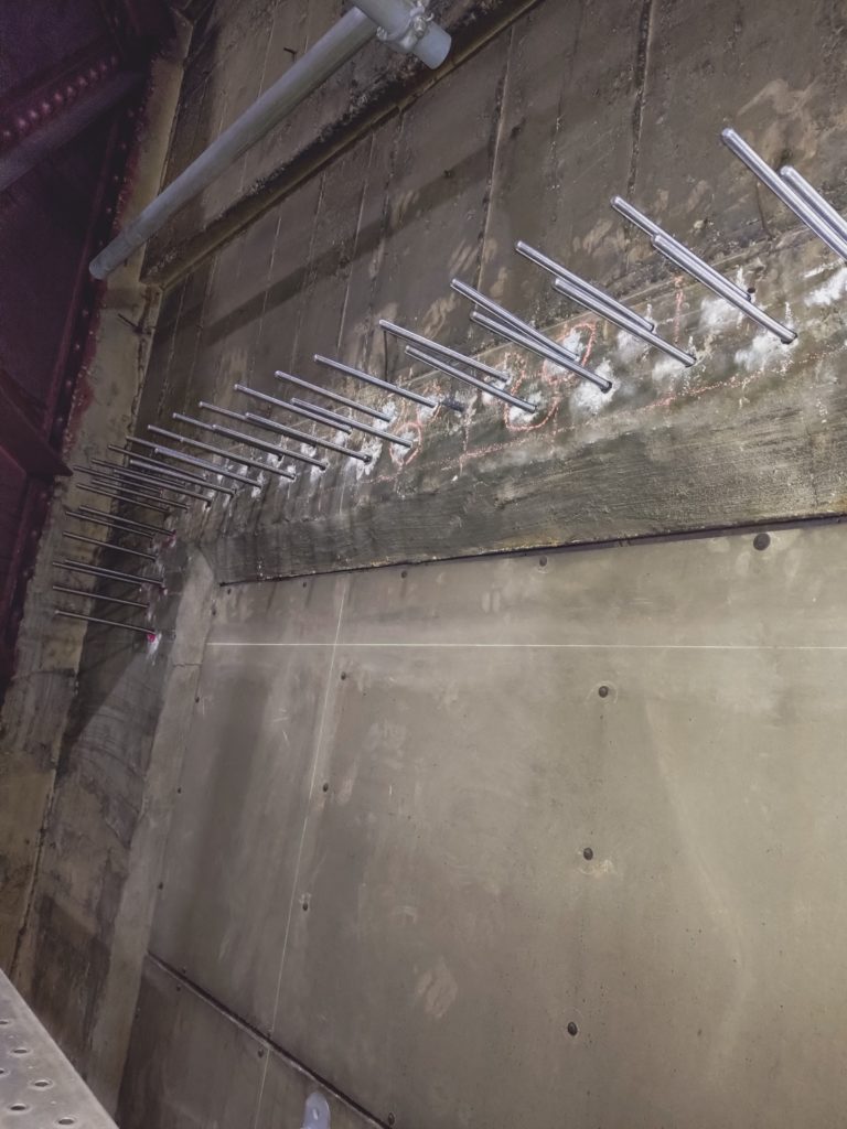 鉄筋干渉し斜めに削孔した部分も数多くあったのですがそれが分からないくらいきれいに施工
