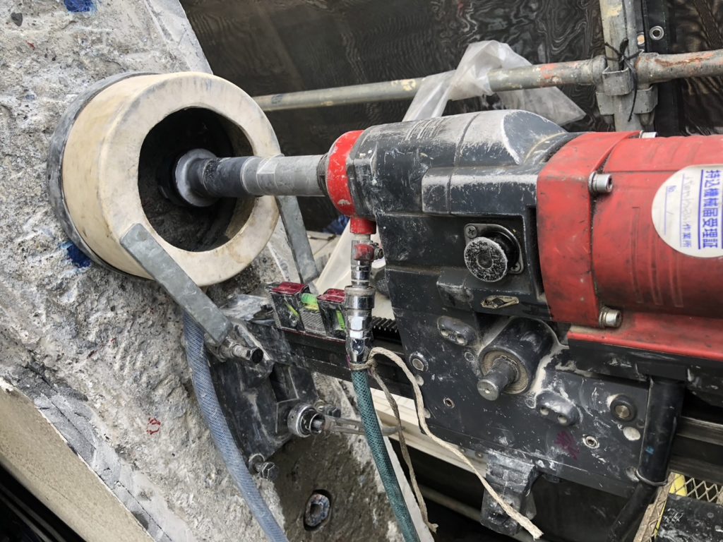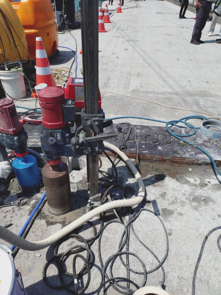 土木の耐震補強工事用コアボーリング。