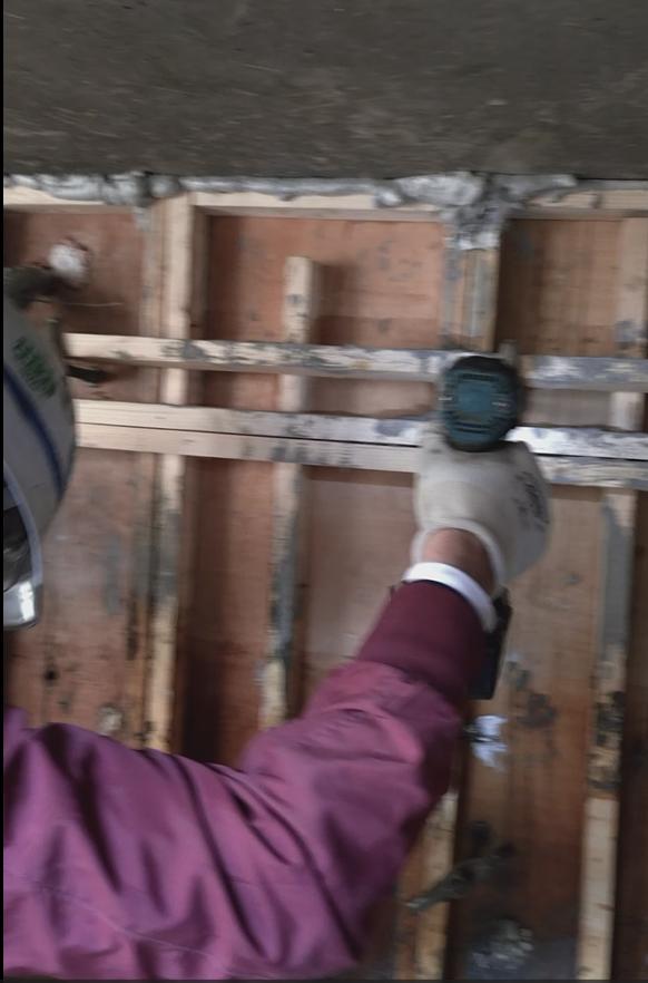 弊社は目荒らしとアンカーと施工管理を担当。配筋、型枠、グラウトは協力会社の大工さんにお願いし